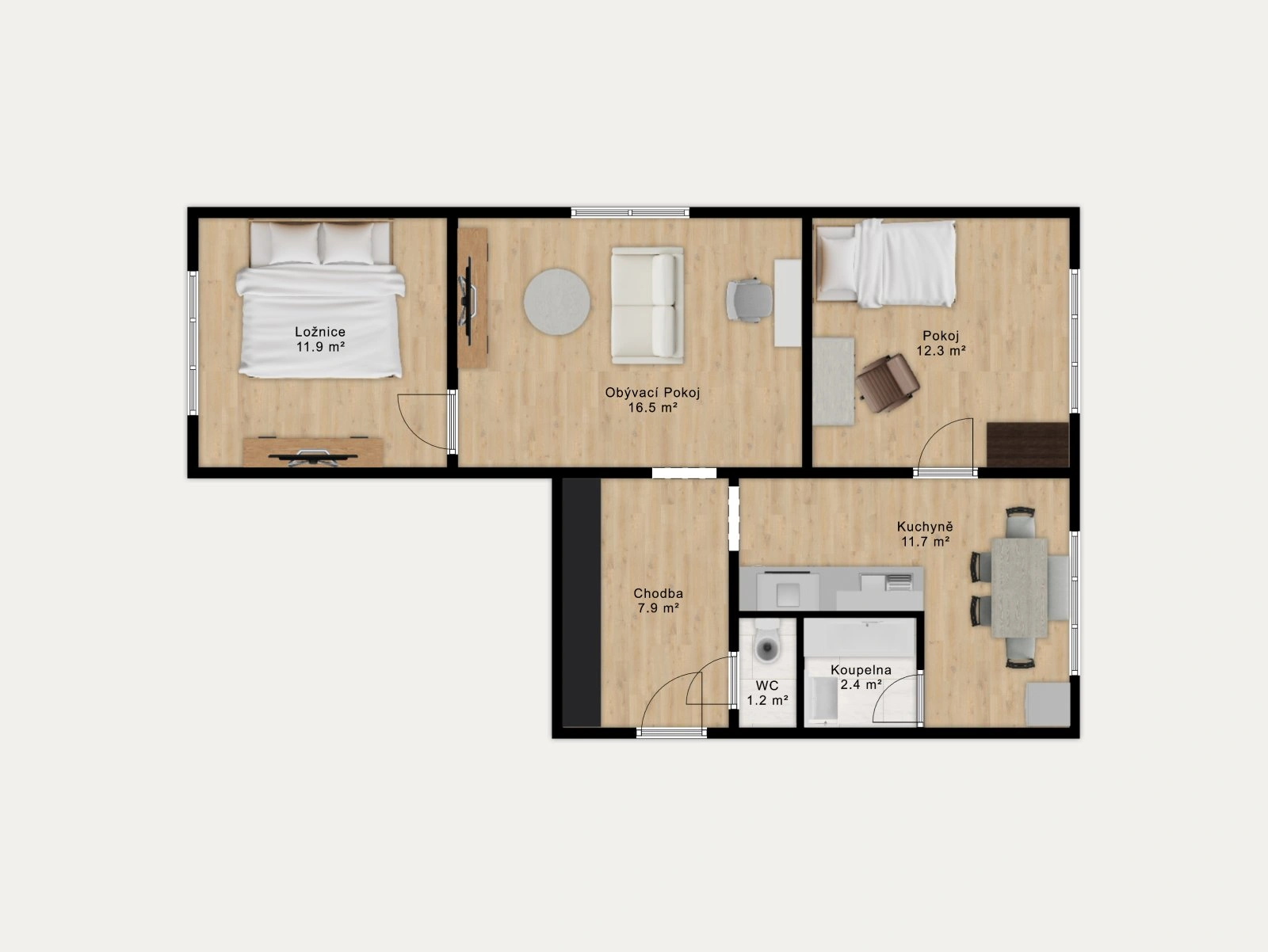Nabízíme ke koupi byt o dispozici 3+1 s užitnou plochou 64 m², umístěný ve 4. patře panelového domu.