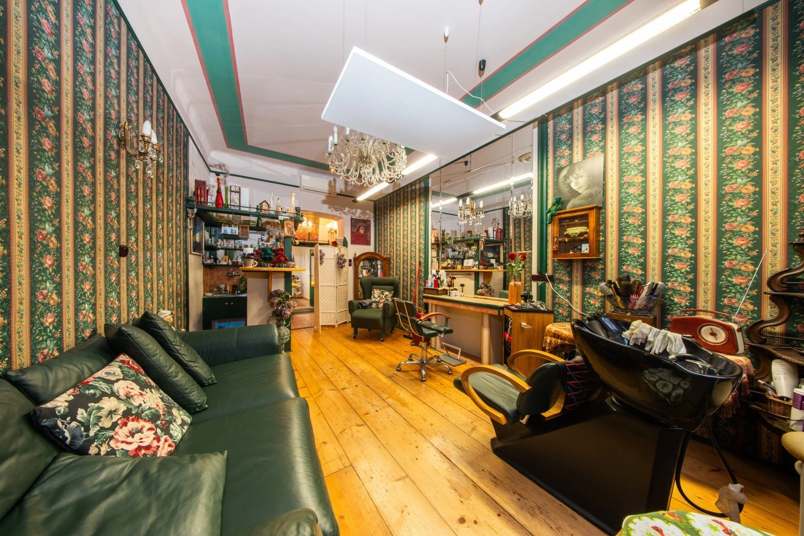 Po vstupu do jednotky se ocitnete v prostorné přední části, která je nyní využívána jako kadeřnický salon. Nachází se zde stylově vytvořený bar a dostatek místa pro realizaci vašeho podnikatelského záměru. Součástí je také oddělená technická místnost s umyvadlem.